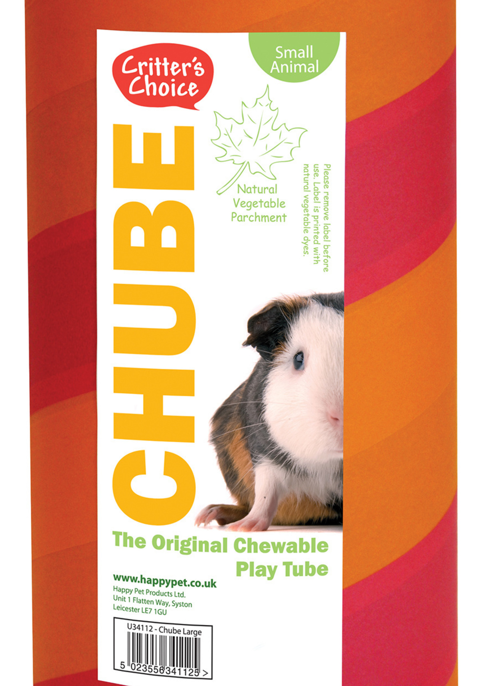 De Chube van The Critter's Choice Range van Happy Pet is een geweldige kauwbare Playtube, fel gekleurd voor alle soorten kleine dieren. De Chube biedt een geweldige schuilplaats en iets veiligs om aan te kauwen en aan te knagen. Deze milieuvriendelijke behuizing zijn gemaakt met bio-afbreekbare groenteperkament en zijn 100% veilig.